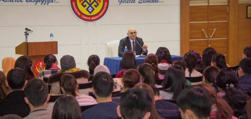 Университеттин «Инсандык өнүгүү» клубу тарабынан өткөрүлүп келе жаткан кезектеги семинардын коногу окуу жайдын ректору, профессор Себахаттин Балжы болду. 25-ноябрь күнү Турмуш тиричиликти тейлөө имаратында өткөн семинардын темасы «Менеджмент» деп аталды.