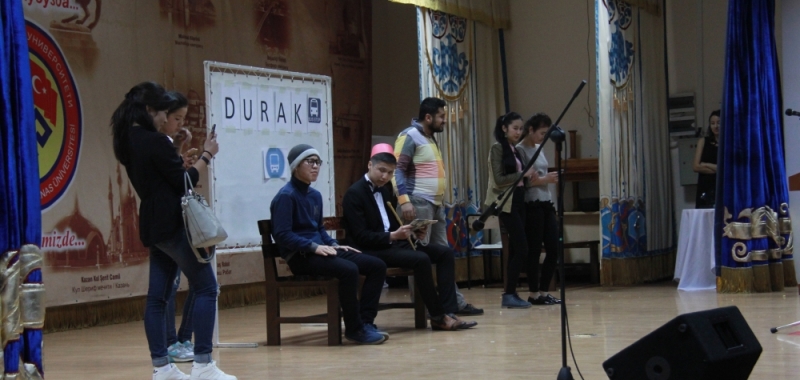 KTMÜ Cengiz Aytmatov Kampüsü Kasım Tınıstanov Konferans Salonunda sahnelenen skeçler, Rektör Prof. Dr. Sebahattin Balcı, Rektör Yardımcısı Prof. Dr. Hüseyin Öğüt, öğretim elemanları ve öğrenciler tarafından ilgiyle izlendi.