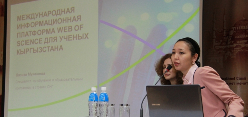 Cengiz Aytmatov Kampüsü Kasım Tınıstanov Konferans Salonu’nda 15 Şubat 2017’de Thomson Reuters’un Rusya Temsilcisi Margarita Sidorova ve Kazakistan Temsilcisi Lyaziza Mukaşeva tarafından verilen seminere Rektör Yardımcısı Prof. Dr. Anvar Mokeyev, öğretim elemanları ve öğrenciler katıldı.