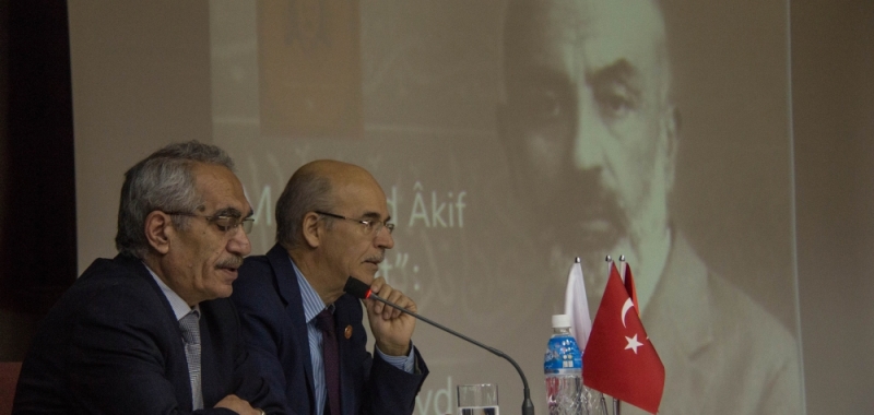 Panel katılımcıları Prof. Dr. Fahri Unan “İstiklal Marşı’nın Yazılışı ve Kabulü”, Prof. Dr. Mehmet Aydın ise “Mehmet Akif ve Safahat” konulu sunumlarını yaparak İstiklal Marşı’nın hangi şartlar altında ve hangi güçlü duygularla yazıldığı, büyük şairi Mehmet Akif Ersoy’un erdemli kişiliği ve hayatı hakkında geniş bilgi verdiler.
