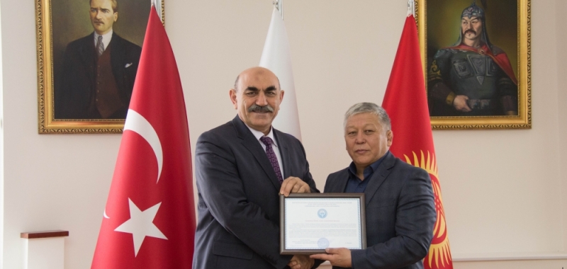 Kırgızistan-Türkiye Manas Üniversitesi (KTMÜ) Rektörü Prof. Dr. Sebahattin Balcı’ya Kırgız Cumhuriyeti Olimpik Spor Branşları Müdürlüğü tarafından teşekkür belgesi takdim edildi.