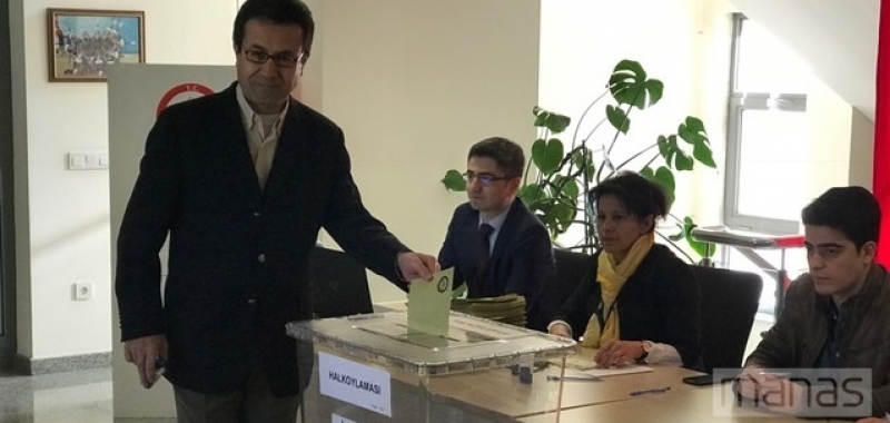 Кыргызстандагы түркиялыктар үчүн Түркия Республикасынын Баш мыйзамын өзгөртүү боюнча добуш берүү башталды.