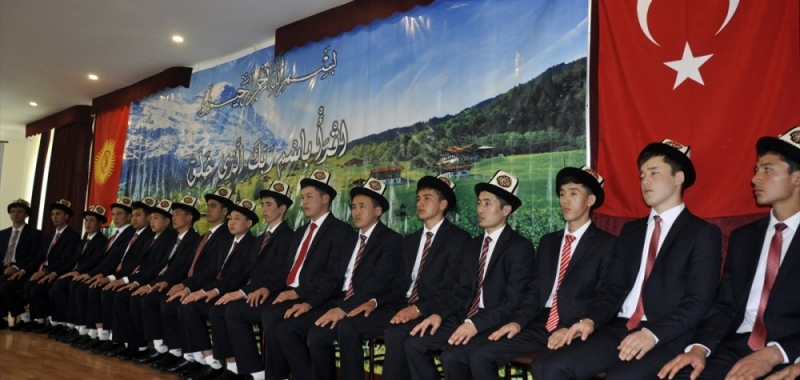 Araşan Sosyal Bilimler Enstitüsü İlahiyat Fakültesi konferans salonunda düzenlenen törene, Türkiye'nin Bişkek Din Hizmetleri Müşaviri Şemsettin Ünal, Kırgızistan Müftü Yardımcısı Akimcan Ergeşov, Kırgız Gençliğe Yardım Etme Vakfı Koordinatörü Oktay Çetin, Termikel Grup Yönetim Kurulu Başkanı Ahmet Kaya, din görevlileri, hayırsever iş adamları ile öğrenci velileri katıldı.