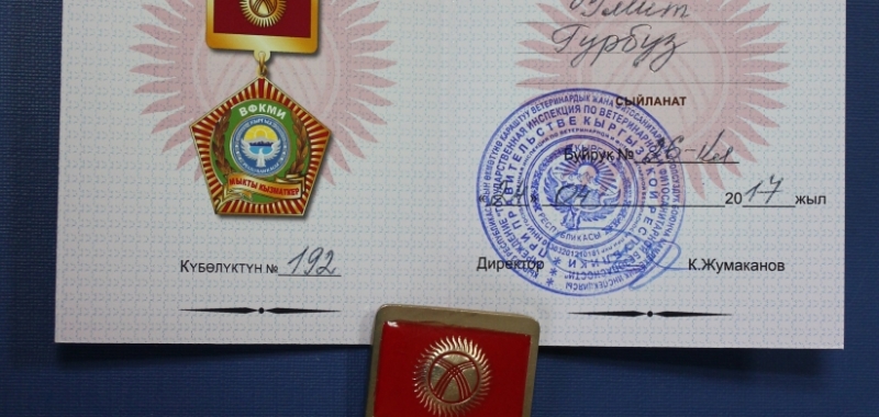 Сыйлык, үстүбүздөгү жылдын 28-апрелинде ветеринарлардын күнүнө карата өткөрүлгөн аземде ыйгарылды.
