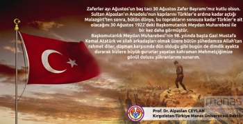 Rektörümüz Prof. Dr. Ceylan'ın 30 Ağustos Zafer Bayramı'mızı Kutlama Mesajı