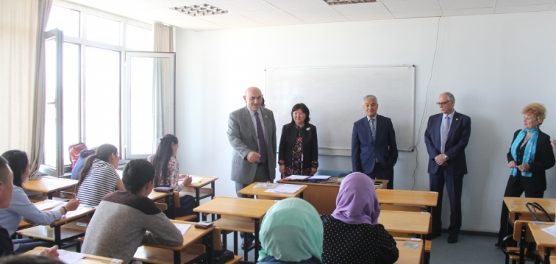 Kırgızistan-Türkiye Manas Üniversitesi Üst Yönetimi akademik birimlerdeki sınav alanlarını ziyaret etti.