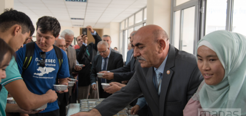 Rektör Prof. Dr. Sebahattin Balcı, Manaslı gençlere yönelik yaptığı konuşmada, “Aşure Günü’nüzü yürekten kutluyorum. Yaşadığımız şu ata toprağımız olan Kırgızistan’ın bu güzel birliği, huzuru bozulmasın ve iyilikler, başarılar bu ata topraklarımızdan başlayarak Türk dünyasına, İslam âlemine ve tüm insanlığa yayılsın. Türk dünyası ve İslam âlemi olarak bizler, insanlığa ve medeniyete öncülük etmeliyiz. Örnek kişiliğimizle, bilimle, ilimle ve güzel ahlakla öncülük etmeliyiz ki dünyamızdaki bu kötü durumların yok olmasına katkıda bulunalım. İşte burada siz değerli gençlere büyük iş düşüyor. Bizlerin gelecekteki umudu sizlersiniz. Bizler için önemli olan bu günün tüm insanlık için huzura, mutluluğa, birliğe vesile olmasını diliyorum.” dedi.