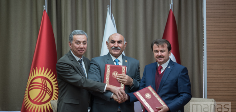 Konuşmaların ardından Başkan Fatih Mehmet Erkoç, Rektör Prof. Dr. Sebahattin Balcı ve Rektör Vekili Prof. Dr. Asılbek Kulmırzayev, iş birliği protokolü de imzaladı. Senatodaki program hediye takdimiyle sona erdi.