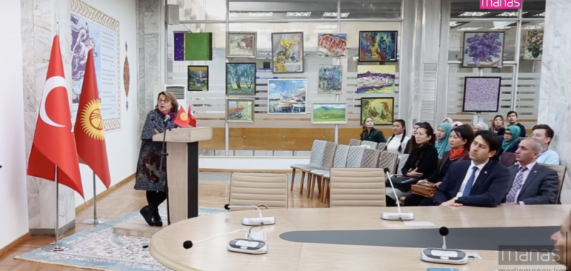 Kırgız Milli Kütüphanesi Kırgızistan-Türkiye Cengiz Aytmatov Kültür Merkezi’nde düzenlenen konferansı ve sergiyi Kırgızistanlılar ilgiyle izledi.