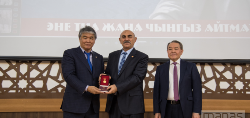 Devlet Dili Komisyonu daha önce de Rektör Prof. Dr. Sebahattin Balcı, Rektör Vekili Prof. Dr. Asılbek Kulmırzayev ile Eğitim Bilimleri Bölümü Başkanı Prof. Dr. Akmatali Alimbekov’a eğitim ve bilim alanında Devlet dilinin geliştirilmesine ve dil politikasının iyileştirilmesine yönelik önemli katkıları ve “Ana Dil ve Aytmatov” projesine aktif katılımlarından dolayı madalya verilmesini kararlaştırmıştı.
