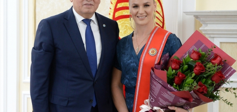 Sporcuya hitap eden Ceenbekov, "Tüm ülke, yüzbinlerce vatandaşımız, spordaki başarılarınızı takip ediyor ve sizi destekliyor. Çok uluslu ülkemiz için kazandığınız madalyalar özel değere sahip. Bunun arkasında uzun yıllar süren bir çalışma var. Üzerinize düşen görevi en iyi şekilde yerine getirdiniz ve Kırgızistanımızın onurunu savundunuz. Gelecekte daha da iyi sonuçlar alacağınızdan ve mükemmel başarılar göstereceğinizden eminiz." ifadelerini kullandı.