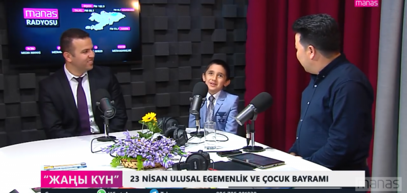 23 Nisan Ulusal Egemenlik ve Çocuk Bayramı’nda Kırgızistan Bişkek Türk İlkokulu öğretmenleri ve öğrencileri MEDIAMANAS’ta Manas Radyosu’nun Yeni Gün programına canlı yayın konuğu oldular. Program MEDIAMANAS’ın Facebook ve YouTube hesaplarından da canlı yayınlandı.