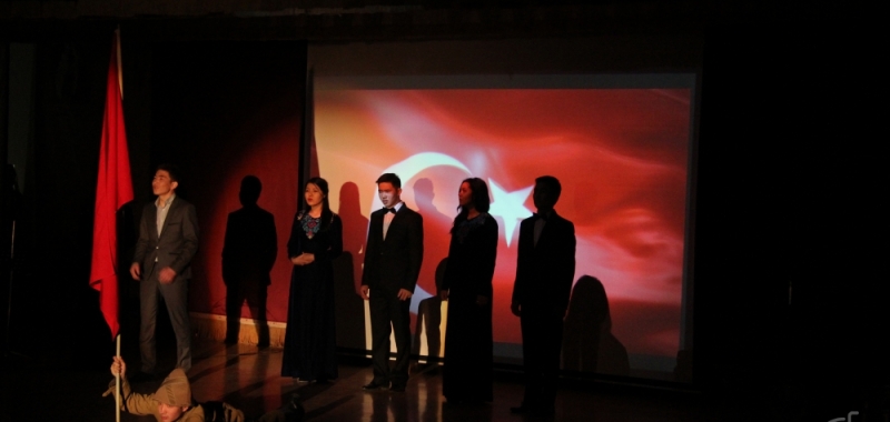 “Чанаккале согушу” аттуу программанын соңунда КТМУ Түрк дүйнөсү оркестринин коштоосунда студенттердин аткаруусу менен Чанаккале тууралуу ырлар көркөм окулуп, чакан спектакль көрсөтулдү.