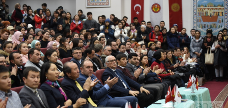 Kasım Tınıstanov Konferans Salonu’nda Yabancı Diller Yüksekokulu tarafından 27 Kasım 2019’da düzenlenen etkinliğe Rektör Yardımcıları Prof. Dr. Anvarbek Mokeyev, Prof. Dr. Hüseyin Öğüt, akademisyenler ve öğrenciler katıldı.