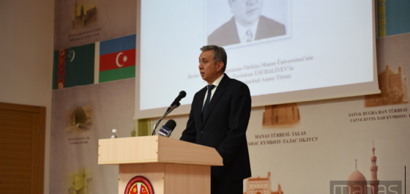 КТМУнун ректору, профессор Себахаттин Балжы Кыргызстандын тарыхында өзгөчө орду бар, саясий лидер катары таанылган Т.Усубалиев тууралуу төмөнкүлөрдү сүйлөдү: «Ѳлкѳн 25 жыл, чейрек кылым башкаруу ар бир эле адамдын колунан келе бербейт. Бул өтө жоопкерчиликтүү жана оор иш. 1980-жылдары Совет өлкөлөрүнүн арасынан суурулуп чыгып, кыргыз коому үчүн чоң эмгек жараткан бул инсан өз мезгилинде эч кимдин колунан келбеген идеяларды иш жүзүнө ашырган. Токтогул ГЭСин куруу менен баштап, 10дон ашык фабрикалардын курулушун жетектеп, 340миңден ашуун адамдарды иш менен камсыз кылып, Кыргызстандын өнөр жайынын өнүгүшүнө кошкон салымы эбегейсиз. Өмүрүн эл кызматына арнаган улуу инсанга 2012-2013-жылдары «Манас» университетинин «Ардактуу доктору» наамын ыйгаруу биз үчүн чоң сыймык болду», - деди ректор.