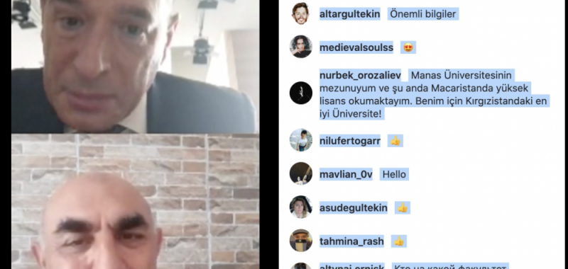 Instagram canlı yayınında Sadık Gültekin'in ve öğrencilerin sorularını yanıtlayan Prof. Dr. Balcı, Kırgızistan'ı, Kırgızistan'da yükseköğrenimi, Üniversitenin öğrencilere sunduğu geniş imkânları ve Üniversite ile ilgili çeşitli konuları ayrıntılarıyla anlattı.