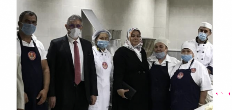 Kırgızistan-Türkiye Manas Üniversitesi Rektörü Prof. Dr. Alpaslan Ceylan, 1 Ekim 2020'de, Sosyal Tesislerde, öğrenciler ile çalışanların beslenme ihtiyacı karşılanmak üzere faaliyet gösteren yemekhane mutfağını gezdi.