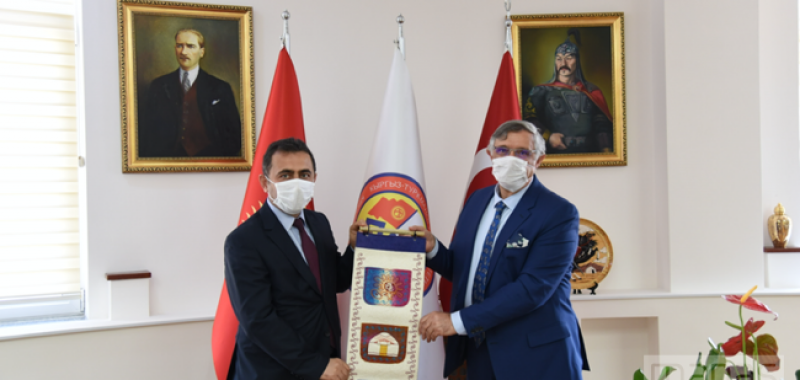 Türkiye Cumhuriyeti Bişkek Büyükelçiliği İçişleri Müşaviri Mustafa Irmak, Rektör Prof. Dr. Alpaslan Ceylan’a iade-i ziyarette bulundu.