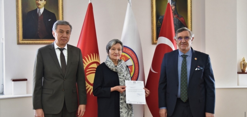 Rektör Prof. Dr. Alpaslan Ceylan ve Rektör Vekili Prof. Dr. Asılbek Kulmırzayev Rektörlükte düzenlenen törenle 8 Aralık 2020 tarihinden itibaren göreve getirilen Prof. Dr. Urdaletova'ya görevlendirme belgesini verdi ve Üniversite rozetini taktı.