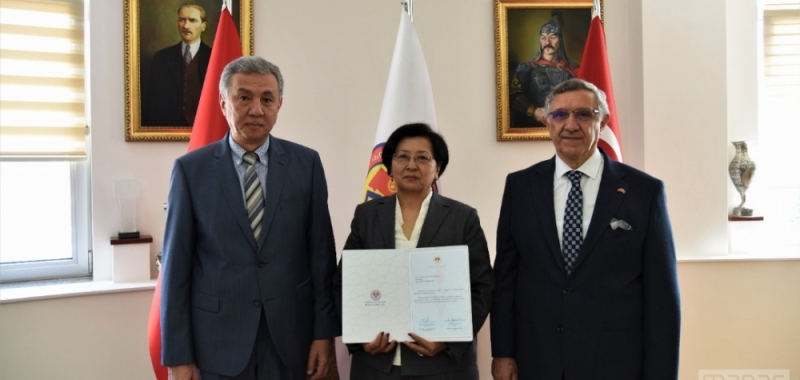 Rektör Prof. Dr. Alpaslan Ceylan ve Rektör Vekili Prof. Dr. Asılbek Kulmırzayev, 3 Mayıs 2021 tarihi itibariyle ataması yapılan Doç. Dr. Kurmanbekova'ya Rektörlükte düzenlenen törenle görevlendirme belgesini verdi ve Üniversite rozetini taktı.