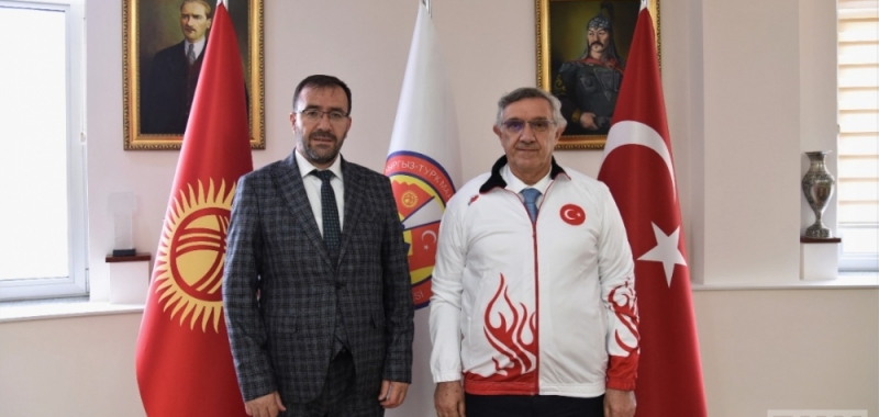 Milli Takım kampının sürdüğü Kırgızistan’a gelen TAF Başkanı Çintimar ile Rektör Ceylan’ın 12 Nisan 2021’deki görüşmesinde ikili çalışma protokolü için fikir alış verişinde bulunuldu, ülkedeki spor kültürü ve üniversitedeki geleneksel spor çalışmaları konuları üzerine konuşuldu.