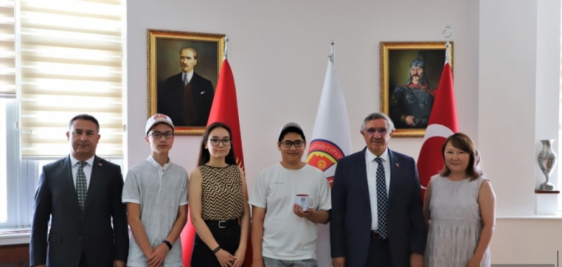 Kırgızistan’da yükseköğretim kurumlarına başvurma hakkı tanıyan Ulusal Genel Bilgi Ölçme Testi’nde 44 bin 416 öğrenci içerisinden ilk 20’ye girerek altın sertifika almaya hak kazanan ve yükseköğrenim için KTMÜ’yü tercih eden Nuriza Alimbayeva’dan sonra, 12 Temmuz 2021’de, üç öğrenci daha Rektör Prof. Dr. Alpaslan Ceylan tarafından Üniversiteye davet edilerek Rektörlükte ağırlandı.