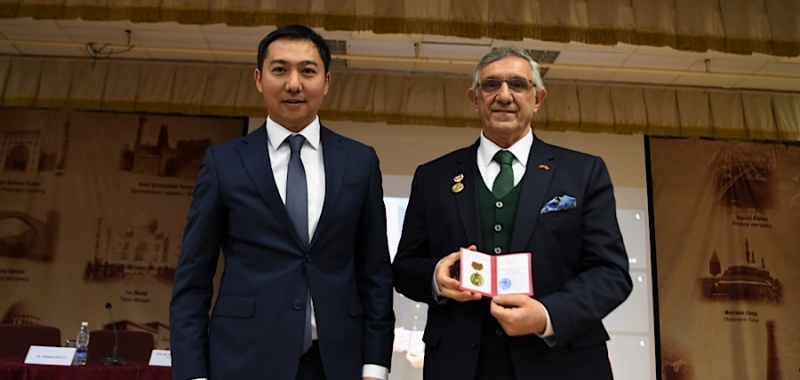 Kırgız Cumhuriyeti Kültür, Enformasyon, Gençlik ve Spor Politikaları Bakanı Azamat Camankulov, Üniversitede düzenlenen Türk Devletleri Uluslararası Bilim Şöleni’nde Rektör Alpaslan Ceylan’a Üstün Hizmet Madalyası ve beratı takdim etti.