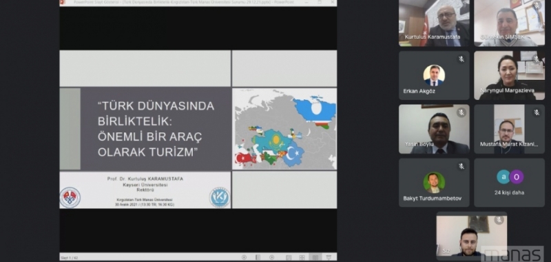 Kırgızistan-Türkiye Manas Üniversitesi Turizm Fakültesi tarafından "Türk Dünyasında Birliktelik: Önemli Bir Araç Olarak Turizm" temalı çevrim içi seminer düzenlendi.