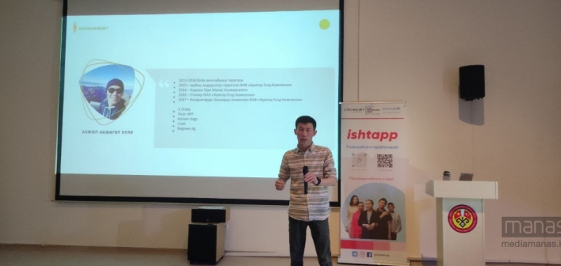 Ardından İshtapp Müdürü Cırgal Durdubayeva, firmasını tanıtan bir sunum yaptı. Durdubayeva, İshtapp’in, iş arayanların daha kolay iş bulabilmeleri amacıyla üretilen bir akıllı telefon uygulaması olduğunu belirterek, uygulamanın kullanımını, sağladığı imkânları anlattı.