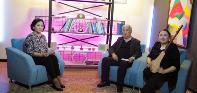 Студиянын коногу Кыргыз эл артисти, “Түрк дүйнөсү” оркестринин жетекчиси, дирижер жана оркестрдин музыканты, комузчу Перизат Ибраева.