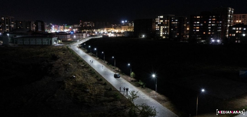 Kırgızistan-Türkiye Manas Üniversitesi Cengiz Aytmatov Kampüsü'ndeki alanların ışıkladırma çalışmalarına devam ediliyor.
