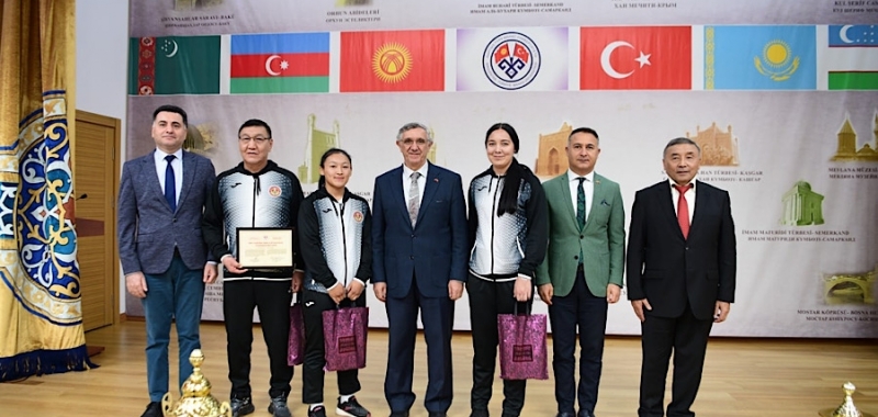 Törene Rektör Prof. Dr. Alpaslan Ceylan, Olimpiyat ve Dünya Şampiyonu Halterci Kanıbek Osmonaliyev ile Kırgız Cumhuriyeti Kültürüne Üstün Hizmet Ödülü sahibi Yazar, Gazeteci, Spor Yorumcusu Kabıl Makeşov da katıldı.