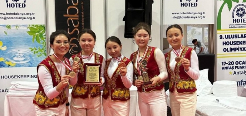 Студенты отделения Туризма и гостиничной деятельности Гаухар Алмазбекова, Сымбат Руслан кызы, Айзирек Согушбекова, Майрамкуль Исмаилова и Айзат Айтымбаева приняли участие в 9-ой Международной Housekeepingолимпиаде HOTED, которая проходила в Анталии с 17 по 19 января 2023 года. Студенты были удостоены второго места в категории "Школы туризма".
