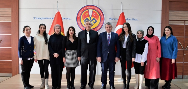 Kırgızistan-Türkiye Manas Üniversitesi Rektörü Prof. Dr. Alpaslan Ceylan, Manas'ta Orhun Değişim Programı ile öğrenim görmeye başlayan öğrencilerle buluştu.
