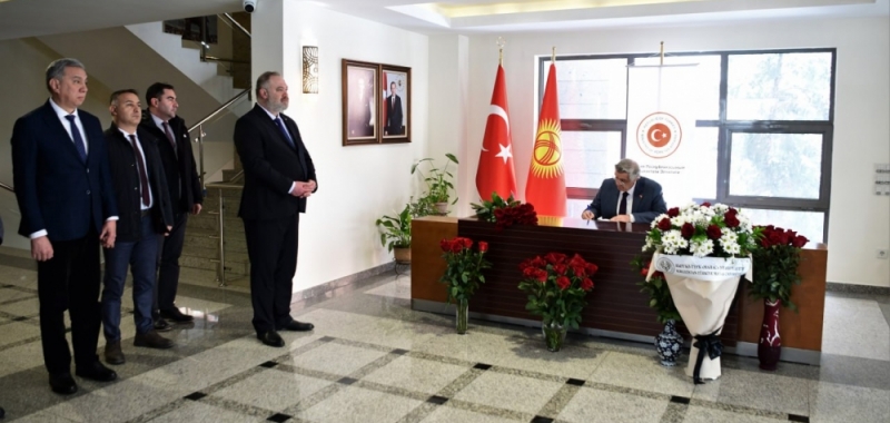 Kırgızistan-Türkiye Manas Üniversitesi Rektörü Prof. Dr. Alpaslan Ceylan ve Rektör Vekili Prof. Dr. Asılbek Kulmırzayev, Türkiye Cumhuriyeti Bişkek Büyükelçiliği’ne giderek, deprem felaketinde hayatını kaybeden vatandaşların anısına açılan taziye defterini imzaladı.