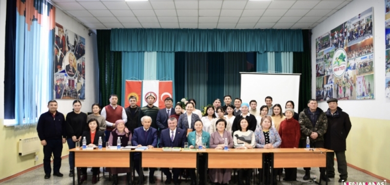 Apas Cumagulov Ortaokulu’ndaki toplantıya aksakallar, kadınlar, öğretmenler ve öğrenciler katıldı.