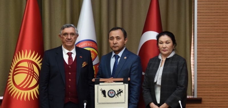 Dr. Babatayev de teşekkür konuşmasında, “Bu zor zamanlarında kardeşlerimizin yardımına koşmak görevimizdi, kardeşliğimizin bir gereğiydi. Biz Manaslılar, bu düşüncede, bu bilinçte olan insanlarız. Gençlerimizi de böyle bir farkındalığa sahip olacakları şekilde yetiştirmeye çalışıyoruz. Türkiye’mize bir kez daha başsağlığı ve geçmiş olsun dileklerimizi iletiyoruz.” sözlerini söyledi.