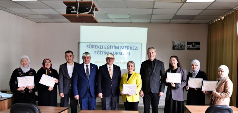 Kırgızistan-Türkiye Manas Üniversitesi Sürekli Eğitim Merkezi (KTMÜSEM) tarafından açılan Arapça Kursu'nu başarıyla tamamlayan kursiyerlere sertifikaları verildi.