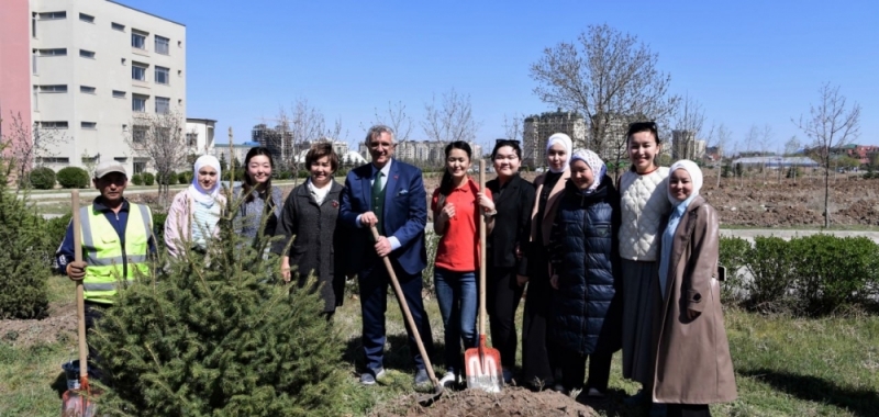 Kırgızistan-Türkiye Manas Üniversitesi 100. Yıl Etkinlikleri kapsamında Cengiz Aytmatov Kampüsü’nün yeşillendirilmesi faaliyetlerine devam ediliyor.