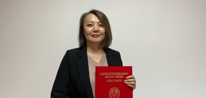 Manas Televizyonu ekibinden Televizyon Gazetecisi Şarizat İbrayeva’ya Kırgız Cumhuriyeti Parlamentosu tarafından Onur Belgesi verildi.