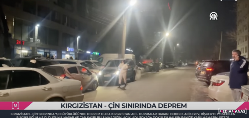 На кыргызско-китайской границе было зарегистрировано землетрясение магнитудой 7,0. Министр чрезвычайных ситуаций Кыргызстана Бообек Ажыкеев отметил, что в Бишкеке сила землетрясения достигла 4,5 баллов, уточнив, что разрушений и потерь нет; он призвал население, обеспокоенное землетрясением, не поддаваться панике.