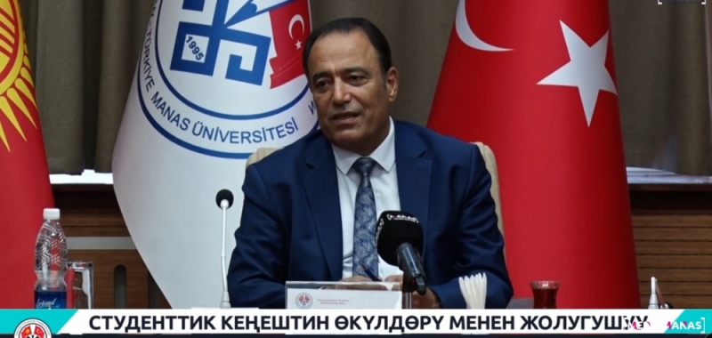 Kırgızistan-Türkiye Manas Üniversitesi Mütevelli Heyeti Başkanı Prof. Dr. İbrahim Çapak, öğrenci temsilcileriyle bir araya geldi.