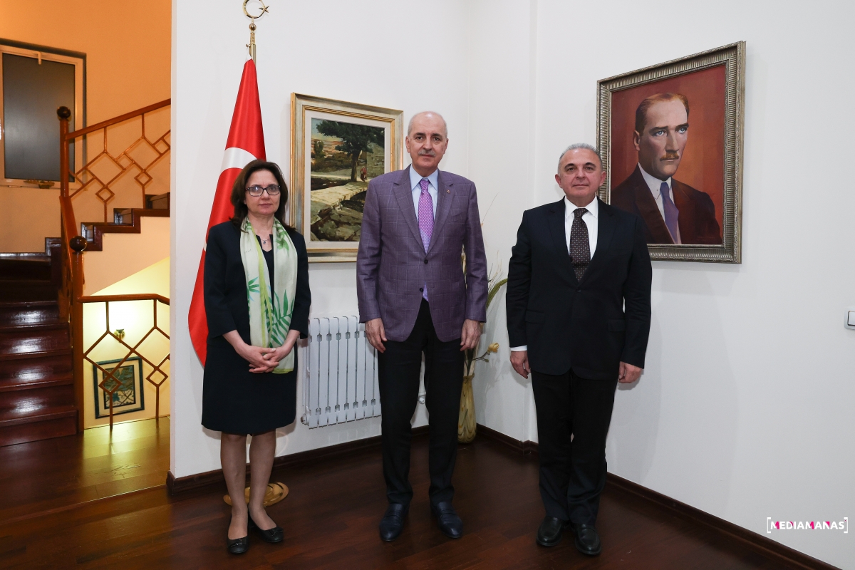 Türkiye Büyük Millet Meclisi Başkanı Numan Kurtulmuş, resmi temaslarda bulunmak üzere Kırgızistan'ın başkenti Bişkek'e geldi.