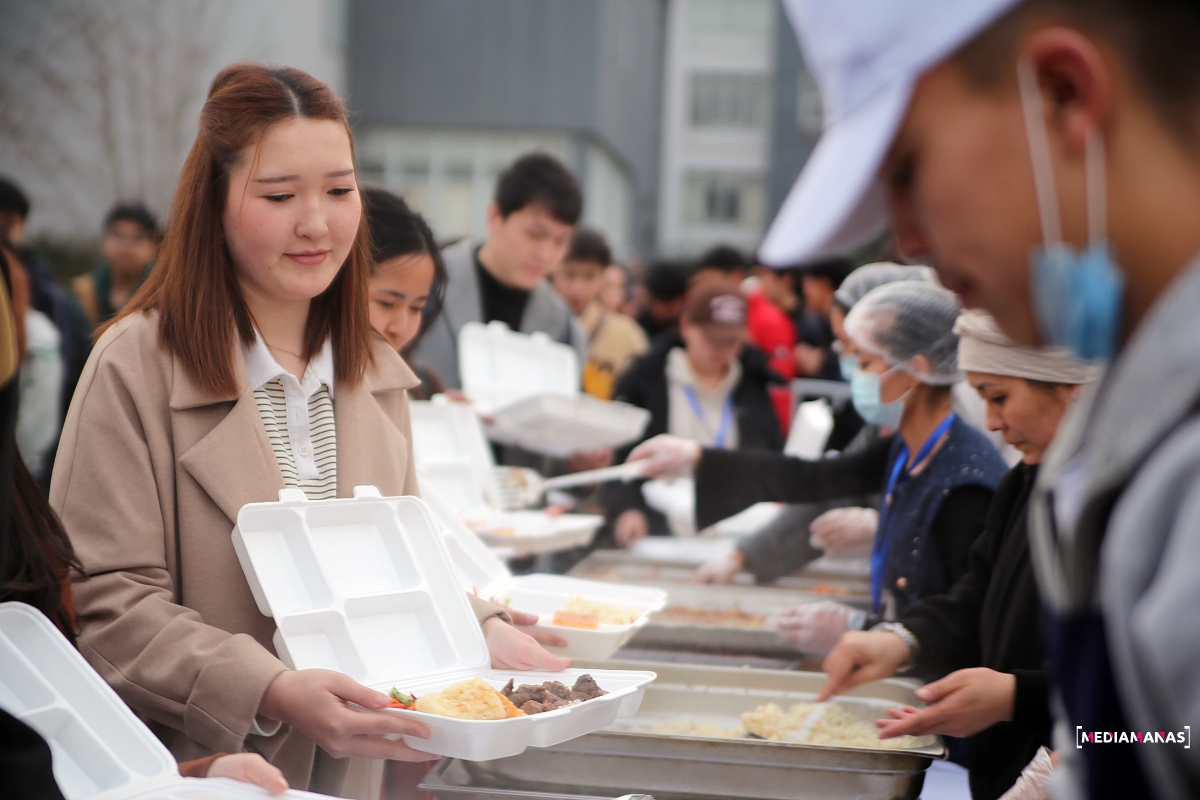 На кампусе имени Чингиза Айтматова КТМУ в Бишкеке был организован традиционный уличный ифтар, который собрал за одним столом тысячи студентов и жителей города.