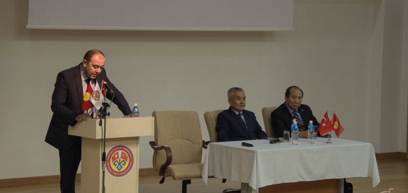 Конференциянын ачылыш сөзүндө окуу жайыбыздын ректору, профессор Себахаттин Балжы жалпы кыргыз элин эгемендик майрамынын 25 жылдыгы менен куттуктап, кыргыз эли байыркы тарыхка ээ жана маданий дөөлөттөрүн бекем сактап келген эл экендигин баса белгилеп: «Учурда Кыргызстан Борбор Азия аймагында бирден бир демократиялык өлкө болуп, өнүгүп келе жатат. СССРдин ыдырашы менен 1991-жылдан баштап түрк дүйнөсүнүн байрактары асманга желбирей баштаган. Алардын бири ата журтубуз болгон Кыргызстан эле. Мына бүгүн Кыргызстан 25 жыл ичинде бир топ тарыхый окуяларды башынан кечирип, өнүгүп-өсүп гүлдөгөн өлкөгө айланды. Чындыгында кыргыз элинин түрк дүйнөсүндөгү орду өзгөчө», - деп эки өлкө ортосундагы достук жана кызматташтык мамиле өнүгө берсин деген тилегин билдирди.