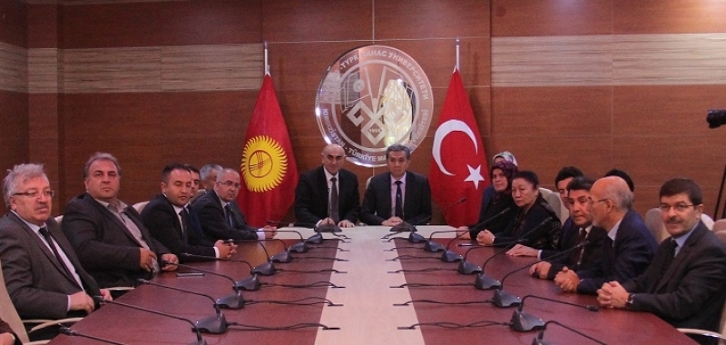 Ректор Себахаттин Балжыга Селчук университетинин ректору, профессор Мустафа Шахиндин атайын берип жиберген белегин аталган окуу жайдан келген өкүлдөр, профессор Хусеин ϴгүт, профессор Үмит Гүбүз, профессор Мустафа Гарип жана доцент Толга Гөк тапшырышты.