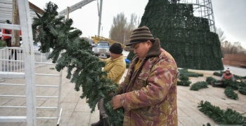 На площади Ала-Тоо полным ходом идет оформление главной елки страны