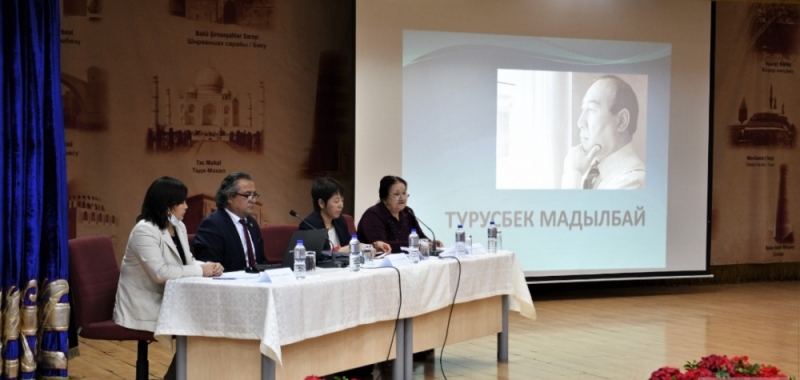 Kırgızistan-Türkiye Manas Üniversitesi’nde (KTMÜ) Kırgız Cumhuriyeti’nin bağımsızlığının 30. yıl dönümü ve 30 Eylül Uluslararası Çeviri Günü vesilesiyle “Turusbek Madılbay ve Edebi Eselerinin Kırgız Diline Çevirisi” konulu Panel düzenlendi.