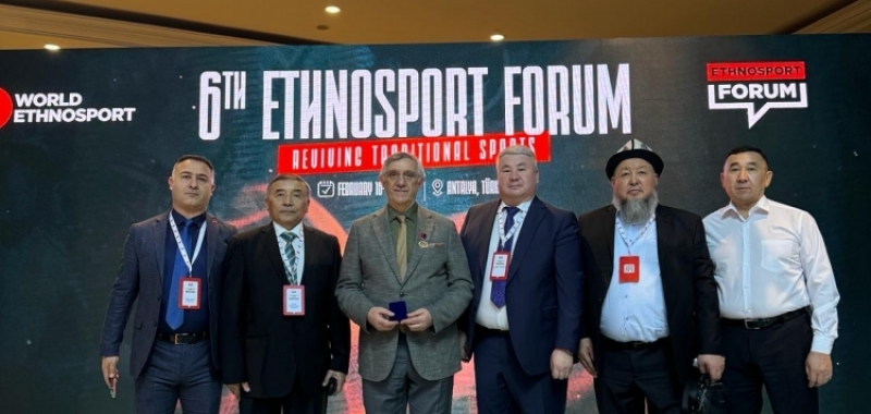 Dünya Etnospor Konfederasyonu tarafından 16-18 Şubat 2024 tarihleri arasında Antalya’da düzenlenen 6. Etnospor Forumu’nun ödül töreninde Kırgız Küröşü Uluslararası Federasyonu Başkanı Rıskeldi Şamiyev, Prof. Dr. Alpaslan Ceylan’a Federasyonun ‘‘üstün hizmet madalyası’’nı takdim etti.